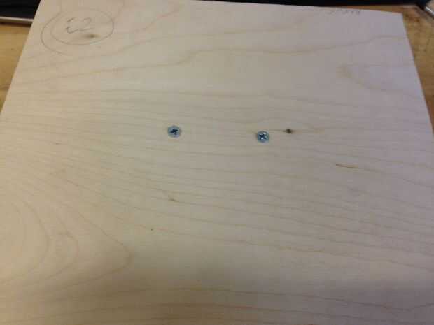 Primero marqué donde quisiera que las piezas de cartón para sentarse en la madera contrachapada. Luego usé un taladro para perforar un agujero pequeño (3/32 funciona bien con los tornillos de madera #8 x 1-1/4 que he usado.