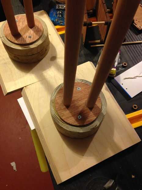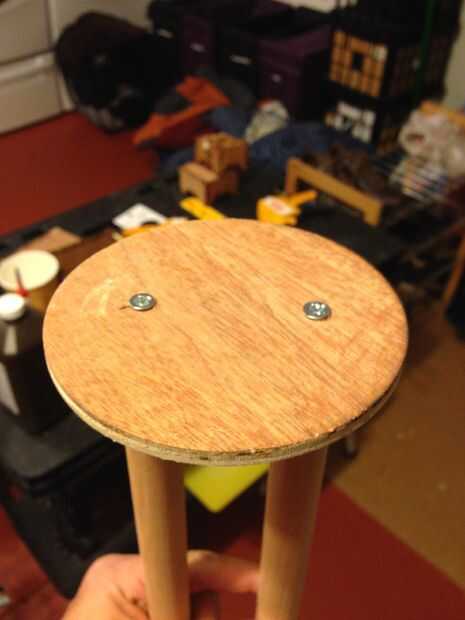 Luego perforar un par de agujeros de 3/32 en la base y luego usa tornillos para madera para fijar la madera a la pieza base.
