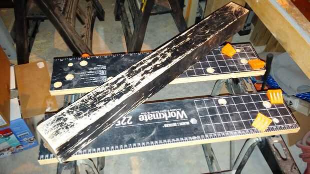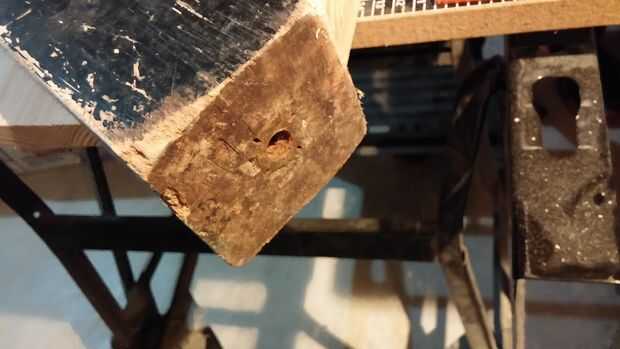 Mirar alrededor de mi tienda, me encontré con un conjunto de viejas patas de la mesa. La tapa de tabla es cosa del pasado y sólo uso de éstos como bloques verticales de paneles grandes de corte, sujeción pegar piezas secas, etc.. Y no necesito los cuatro, así que sacrificar uno para este proyecto sería una gran manera de reciclar y mantener los costos. El post es sólido, aunque la superficie es en forma bastante duro como usted puede ver en las fotos. No hay que preocuparse, ya que va ser cubriéndolo todo muy pronto. Las dimensiones son 2 3/4 "x 2 3/4" x 28 "así que esto debería funcionar bien.