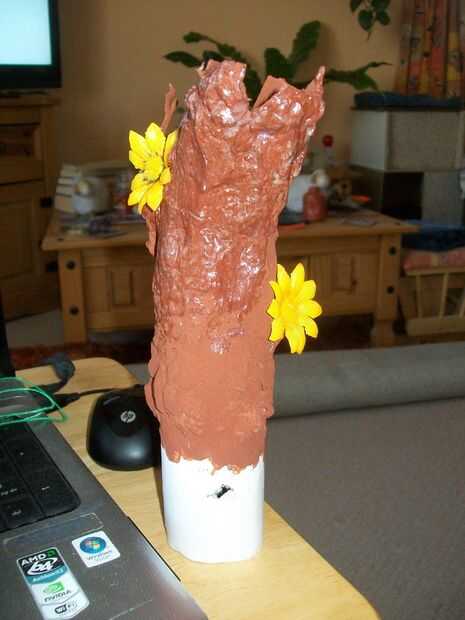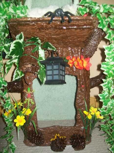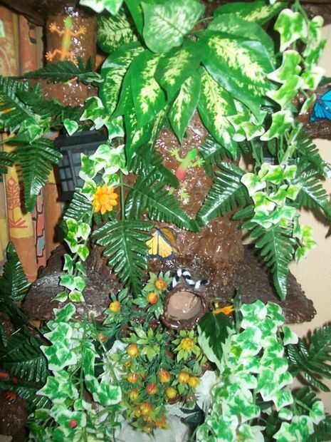 Pintado el marrón de todo (algunos mientras que todavía húmedo para conseguir un efecto diferente en lugares pintado) agrega varios errores caseros (mariquitas de mariposa, orugas, araña grande y algunos brillan en los lagartos oscuros. Además de 4 lámparas de suspensión solar, pintado y conos de abeto barnizado.