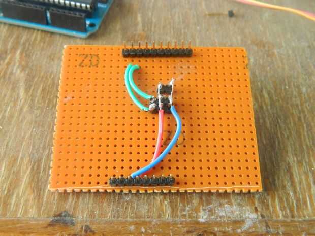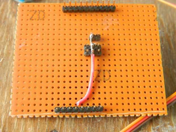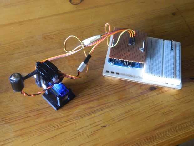 Para los servos necesita cables de datos. Soldadura servo vertical (verde) al pin 9 y servo horizontal al pin 10.