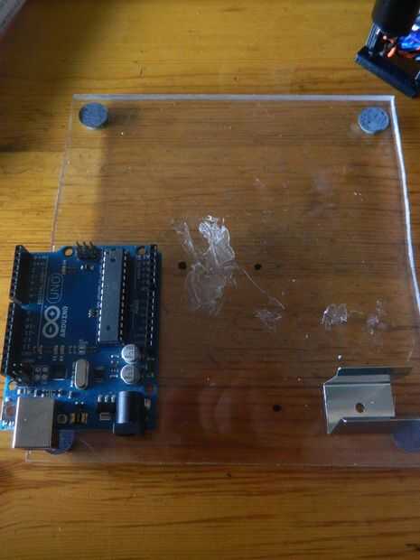 Tenía un tablero de acrílico colocación alrededor del proyecto de una escuela así que decidí utilizarlo ya que es bastante pesado y tiene una goma pies para mantenerlo en su lugar.