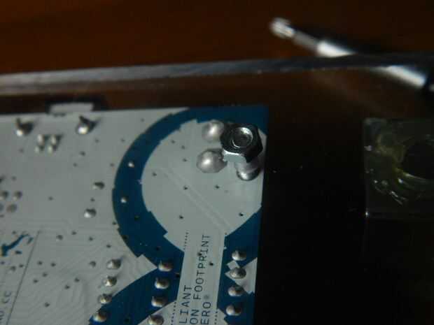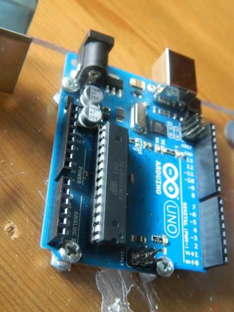 La marca Arduino lugares de montaje para la base del tablero y perforación a él. Para mantener el Arduino en lugar utilizar algunos tornillos y tuercas para perno hacia abajo.