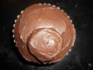 Para los pastelitos de perro, helado del todo cupcake con glaseado de chocolate y añade una cucharada de chocolate glaseado hacia abajo para el hocico.