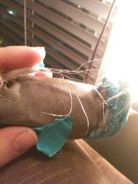 Para agregar el zumbador al ratón necesitamos nuestras baterías de 3V y el zumbador. Primero quitamos a la tela azul del ratón por lo que la izquierda lo único que es la cáscara dura del ratón. Siguiente nos pero 2 3 baterías del Volt en serie y conecte el cable negro de la alarma al extremo negativo de las baterías. A continuación corta un trozo de alambre y había atado al extremo positivo de la batería. Hicimos todo esto por simplemente envolver cinta aislante alrededor de los cables y baterías. (Nota: si toca el alambre rojo de la alarma desde el extremo positivo de la batería debe oír un zumbido. Si no, has hecho algo mal.) Ahora nos tira el plástico el alambre rojo. Si tiene suerte tendrá múltiples poco cables dentro que puede plumas hacia fuera. Si no, tienes que soldar varios alambres expuestos al cable rojo tan ellos pueden ser plumas hacia fuera sobre la parte posteriora del ratón. una vez hecho esto atamos las pilas al frente del ratón y el zumbador en la parte trasera del ratón. Tenga cuidado de no cubrir el agujero de la alarma o el sonido se silenciará. No cubra los cables con plumas o el alambre abierto desde el extremo positivo de la batería.