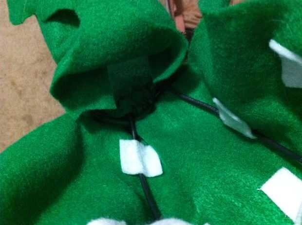 Quería hacerlo rápido y con mínima cantidad de costura... también muy ligero... y sin rellenos... Vivimos en florida... y mis perros son como 6 libras... usé este poliéster 8.5 por 11 hojas para hacer el traje. usé al auto adhesivo blanco unos para mantener juntos... y conéctelo a los cables...