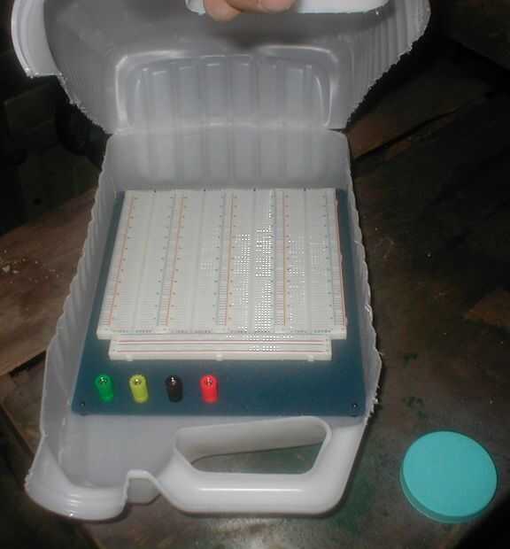recientemente compré una caja de la electrónica basura experimentador que fue ligeramente no usado (nunca?). Un artículo que vino con él fue un protoboard limpiado prístino. No es mi primera asi que sabe lo que estas cosas pueden conseguir buscando como si queda afuera. Polvoriento, sucio, blech! Tenía planes para hacer una caja de almacenaje de madera agradable para él, por qué aún estaba buscando en mi estante común para recoger madera para iniciar el proyecto cuando espió una pieza de plexiglás sobre allí y que me puso a pensar, la madera es buena pero de plástico, entonces me pulsó OK quizás sólo se cayó de la plataforma , pero tenía allí una botella vacía de gatos y miró y yo era como usted sabe, sólo podría trabajar...