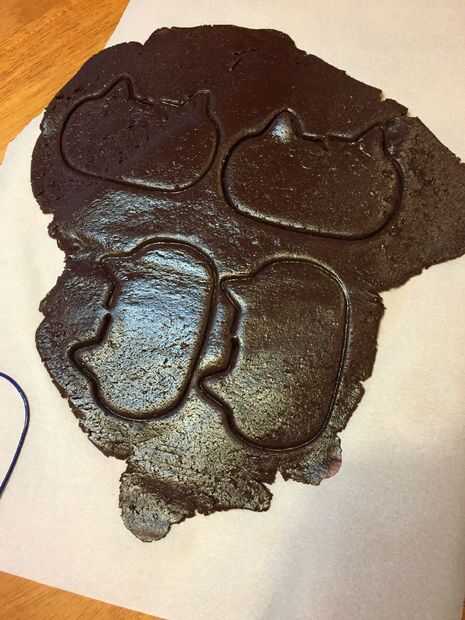 Ahora que tenemos un cortador de galletas, o ahora que llegó de envío, vamos a cocinar esos gatos! Vamos a comenzar por precalentar el horno a 375 grados f el. ablandar que mantequilla! Usar el microondas, nadie tiene tiempo para esperar a ablandar en su propio! Tenemos shows para ver! Ahora combine la mezcla para pastel, harina, agua, huevo y mantequilla y mezclar hasta que se combina. Ahora Envuelva la masa en plástico y enfriar durante 15 minutos en el congelador. Ver un episodio de Steven Universe para pasar el rato. ¿Más del show? Esto significa que usted puede sacar la pasta! Ahora, conseguir un pedazo de papel de pergamino hacia fuera sobre el tamaño de que hornear. Poner la masa en él, luego rodillo plano de 1/8 de pulgada de espesor. Ahora agarrar cabeza de gato! Corte un número par de cabezas de gato fuera de la masa. Ahora, cortar ojos la mitad de la cabeza de gato. Cocer en el horno durante 5-6 minutos. La bola de masa sobrante y repetir el proceso, a partir de la congelación. O simplemente, comerla.