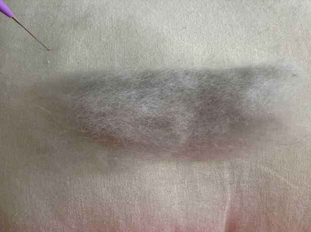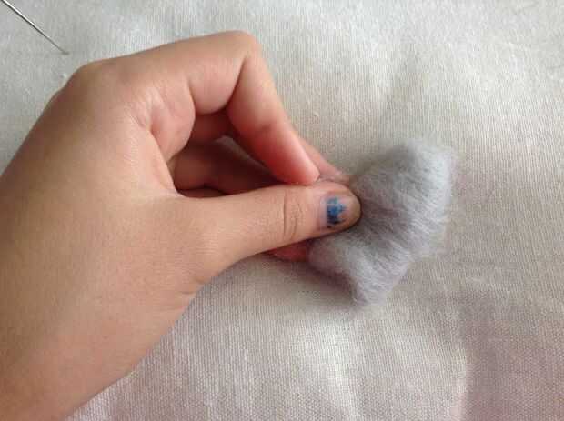 Tome un pedazo grande de lana de fieltro (mismo color que la cabeza) y formarlo en una forma ovalada con sus cojines del dedo (otra vez, sin apretar)
