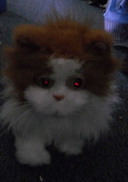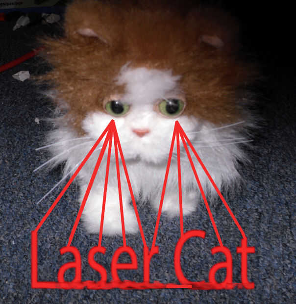 Este instructable muestra cómo hacer tu propia mascota robótica láser Cat. Este robot camina y ronronea. Cada vez que ronronea el gato Laser lasers disparan desde sus ojos.