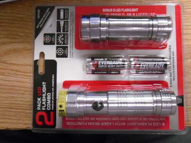 Diodo láser 2 asambleas. -Mina vinieron de un doble linterna pack de Home Depot. Estaban en separación de alrededor de $3,50. Para esto tienes 2 linternas de LED, 1 con un láser rojo y 6 pilas AAA. No puede vencer a ese precio. Para la comparación todas las linternas con láser fueron en el $+ 50 gama.