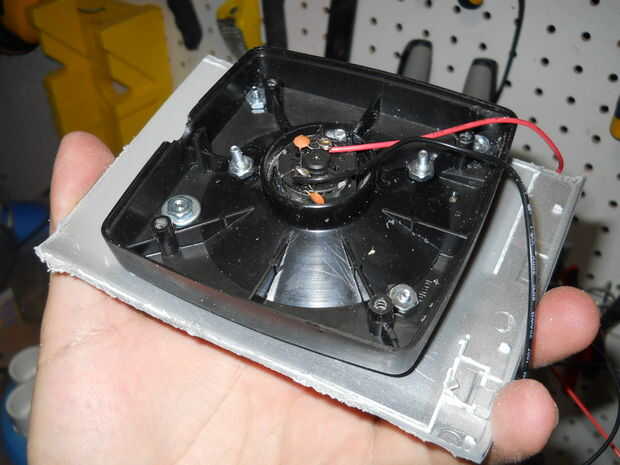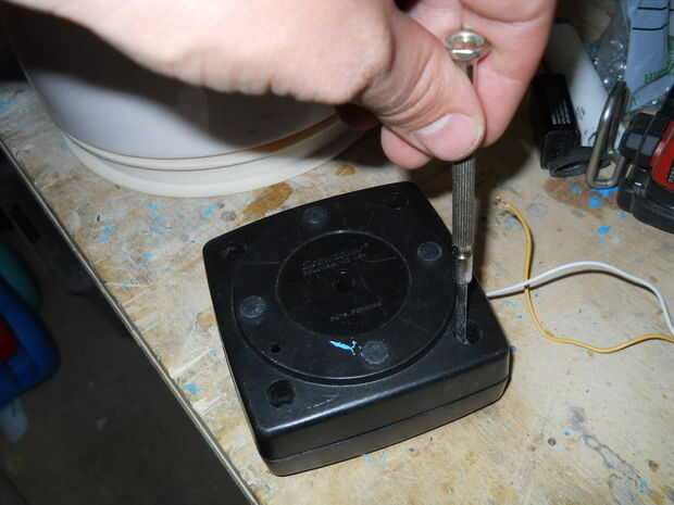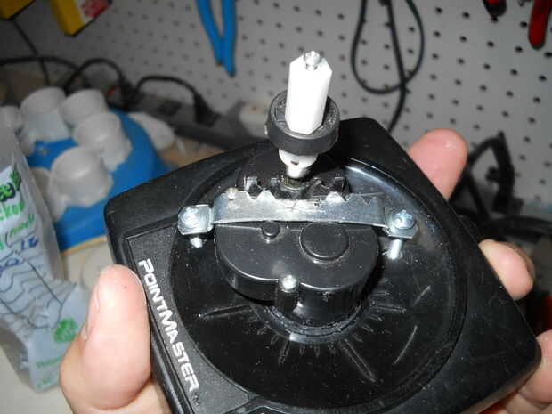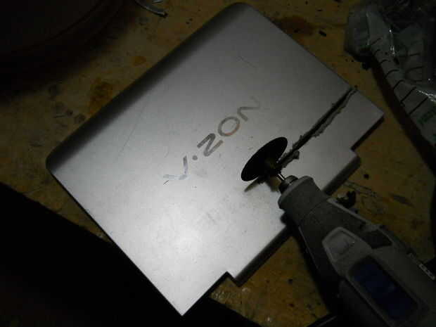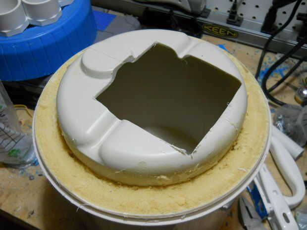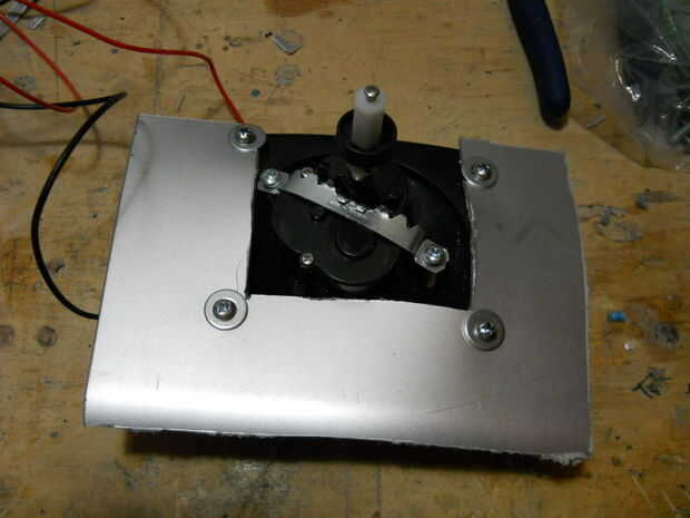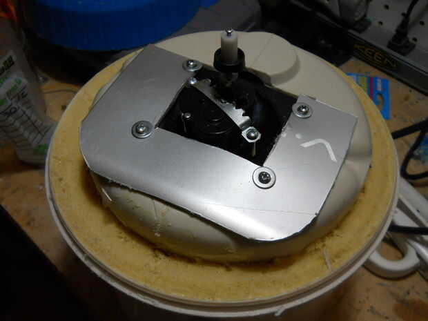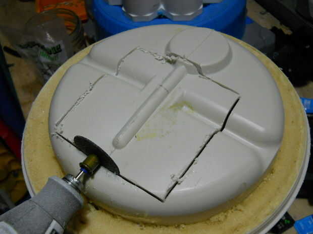 El uso del disco de corte, abrí un agujero cuadrado en la parte inferior del termo, para el caso de la palanca de mando de la vivienda. A continuación, os adjunto una hoja de plástico para el caso, así que más adelante soluciono el caso para el termo (pero no).