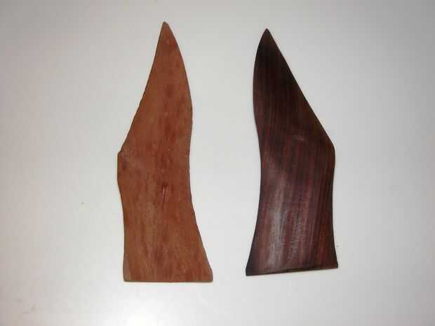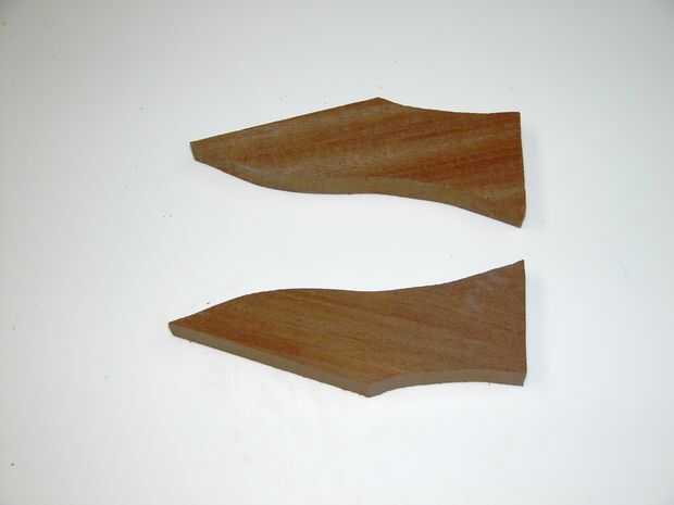 La creación de las alas requiere paciencia. Lijado inicial usando el taladro radial reducirá tiempo considerable. La primera foto de arriba muestra un par de alas después de usar a la sierra. La segunda foto muestra dos alas después de un lijado. Tenga en cuenta las sombras grises. Las sombras reflejan en una mayor cantidad de lijado ha tenido lugar para dar una sensación de profundidad al pájaro. Estudiando las alas en la segunda foto, se da un sentido de vida y belleza al pájaro. Las alas deben ser 1/32" a 1/16" espesor terminado excepto donde se pegan las alas y el cuerpo. Remojo el ave y las alas en aceite (preferiblemente misma para terminar el pájaro) y luego manteniendo el pájaro hasta una luz fuerte: puede ayudar en la talla de las alas.