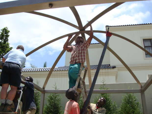 esto es un gazebo que hice hace varios años fuera de una vieja antena parabólica de 10 ft de fibra de vidrio cuando se convirtieron en obsoletas. Era eso o hacerlo en un estanque o pileta más grande del mundo.Quitado el plato de su montaje y cavaron