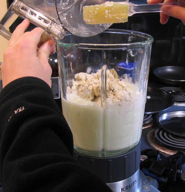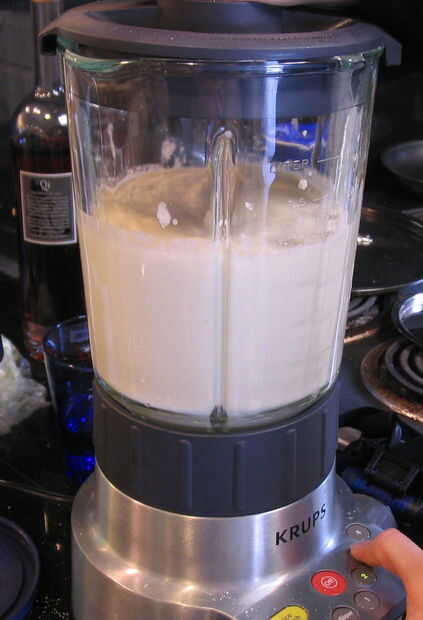 -Mi procesador de alimentos era realmente demasiado pequeño para esta (c 7) así que me cambié a la licuadora. En ese caso, mezclar el pepino y la fruta con la leche de coco y agua suficiente para hacerlo ir y procesar hasta que quede suave. Añadir la pasta de ajo y tuerca. Ajustar la consistencia con agua, añadir sal y pimienta al gusto.