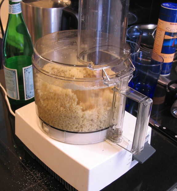 -Saque el procesador de alimentos y picar las almendras en polvo.