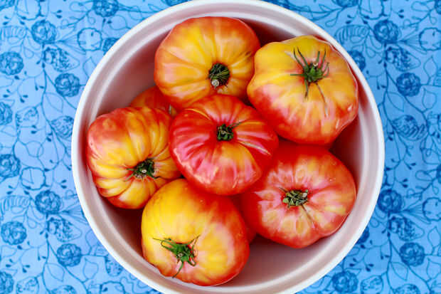 tomates de la herencia de 5 libras, tubular, sin semillas y cortados en cuartos