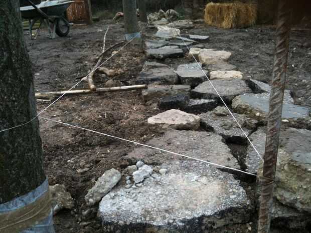 Usar cierta cuerda para alineación y nivelación de propósitos. Siguiendo la marca de la cuerda una Fundación cerca de 25 cm o menos para nivelar la pared y proporcionan un aislamiento de la humedad de la tierra. Establecer algunas grandes rocas en las esquinas de ambos extremos para evitar daños.
