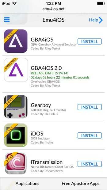Esto es probablemente la forma más sencilla de conseguir un emulador GBA. Primero ir a la página web www.emus4ios.com en el ipod.