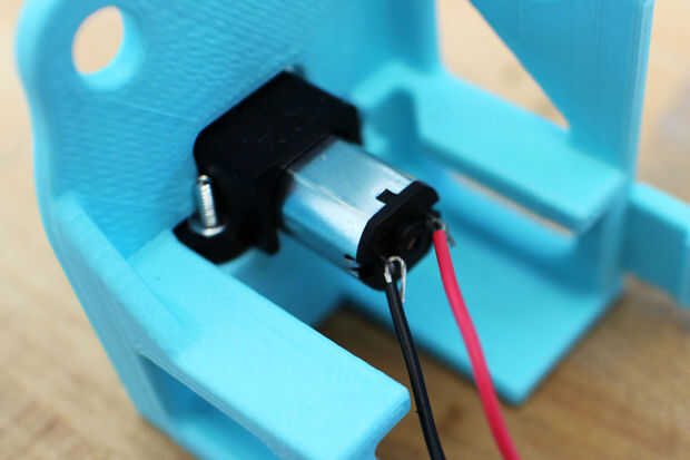 Necesitamos para asegurarse de que el motor girará en la dirección correcta antes de que la soldadura del motor a la caja de batería. Cortar los cables para reducir al mínimo la holgura y tira de sus extremos. Busca en la parte posterior del chasis, el motor debe estar girando en sentido antihorario para el robot a avanzar. Encienda el interruptor en la caja de la batería y tienen sus alambres contra los conductores del motor. Asegúrese de que el motor gira en sentido antihorario. Si gira hacia la derecha, cambie los cables. Recuerde que alambre fue unida al que plomo para soldar.
