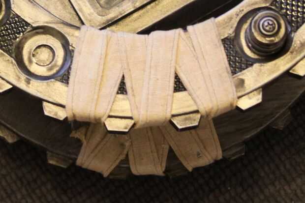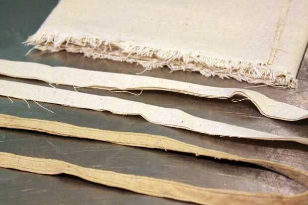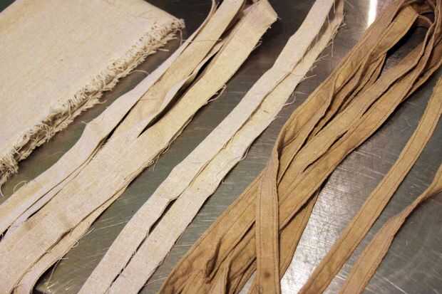 Hay significativamente más tela atar con correa en esta arma que ata con correa de cuero. Decidí estas correas debían hacerse desde cero para asegurarse de que el apoyo que igualado lo más cerca posible. Fui a una tienda de tela y encontrar un curso realmente gran tela en un color arena. Usando una máquina de coser es algo que mi esposa es mucho mejor que yo. Así que me las arreglé para reclutar su ayuda en la costura a un montón de correas para mí. Salieran perfecto. Ella entonces té les teñido para que se vean un poco más sucio. Puedes ver las tres etapas de estos en los cuadros 3 y 4. Después de que termine la meteorización en los mangos, se ser permanentemente pegar para que no deslicen. Cuadro 5 se muestra cómo se envuelven los pedazos de equipo. Son todavía forma mirando demasiado limpio, lo vamos a sucio les un poco.