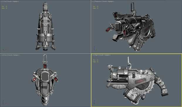 Epic Games, los creadores de Gears of War, amable suficiente para proveerme con el modelo 3D de alta resolución para trabajar de este proyecto. También entró en el juego y tomó tantas fotos de referencia posible para tener tanto material de origen a trabajar como sea posible para la geometría y las texturas. Insisto no puedo lo suficiente lo importante que es material de referencia.
