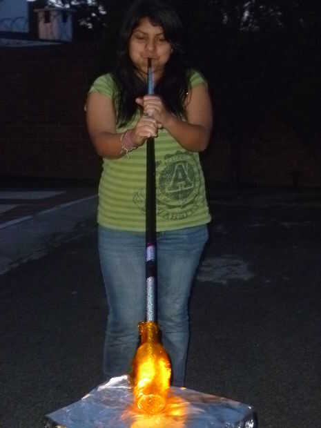 Die Luft wird durch das Rohr geblasen, um die heiße Masse zu erweitern.
