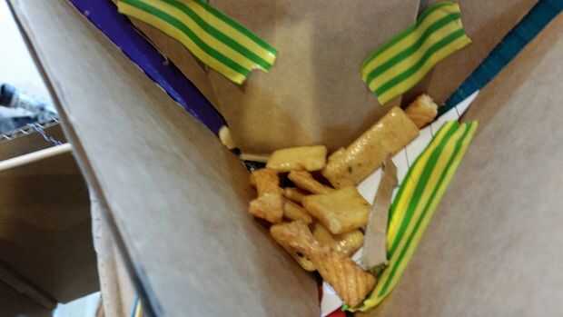 Desde la salida del cono, el munchies Deslice hacia abajo sobre la cinta transportadora. El impacto los separa más. Cada vez que munches no se toquen entre sí sobre la cinta transportadora, la máquina basado en visión de computadora serán capaces de separarlos. De lo contrario, van a toma "no reconocida".