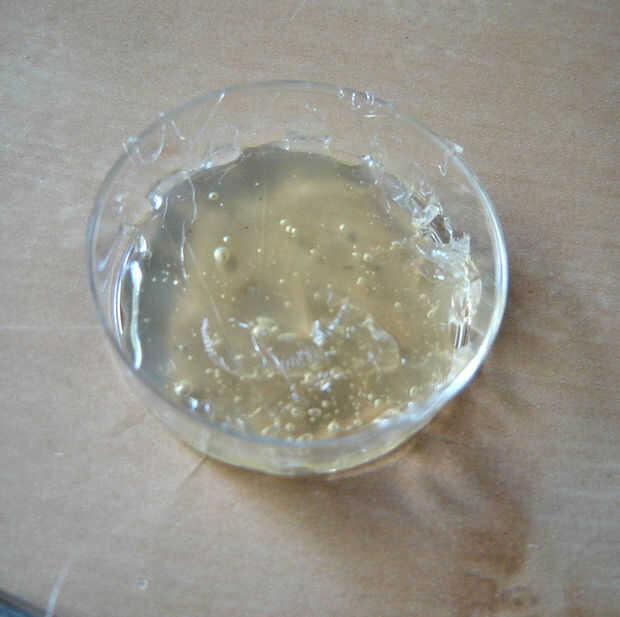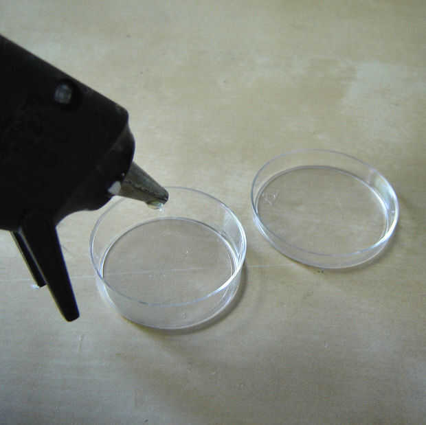 Utilizando una técnica estéril (es broma) Llene el fondo de la caja Petri con pegamento, repartidos uniformemente para cubrir la placa entera con igual espesor.   Dejar enfriar y endurecer.