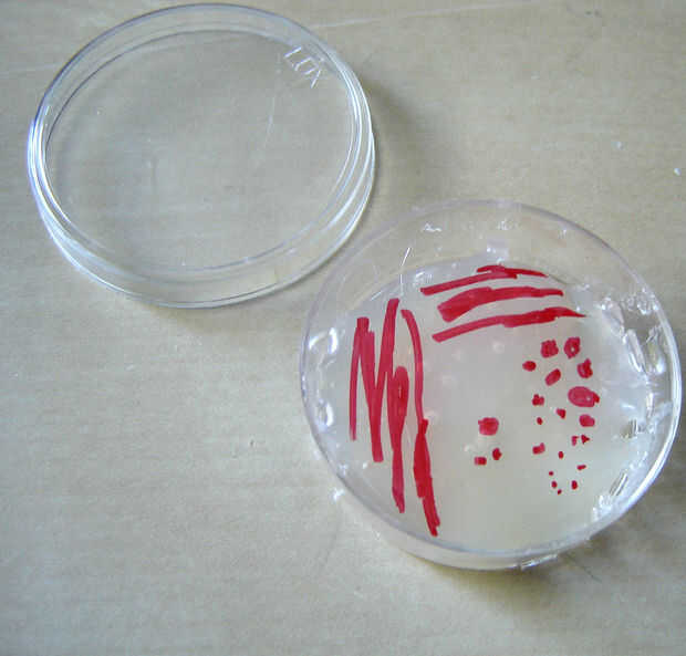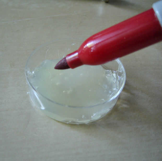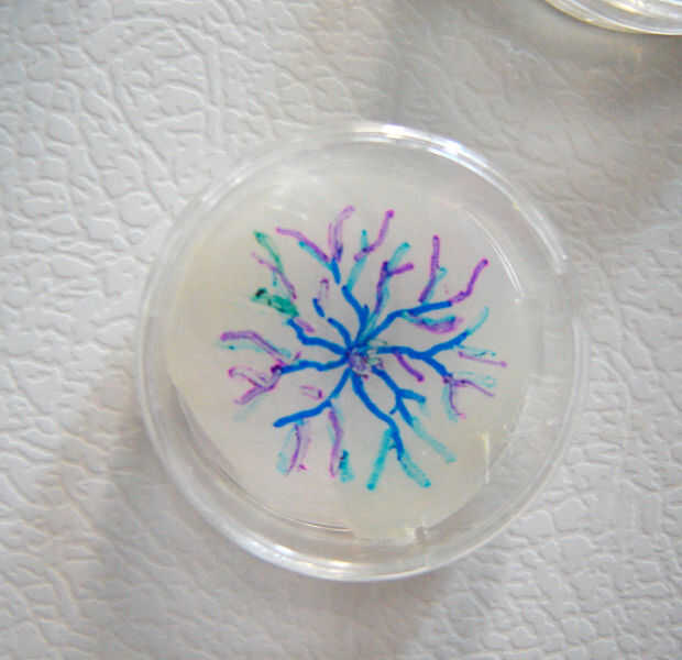 solía sharpies dibuja las bacterias y moho en la superficie de la cola.  En el primer plato he intentado imitar un plato de raya.  En el otro plato que dibujé una colonia de molde colorido irradian desde el centro.