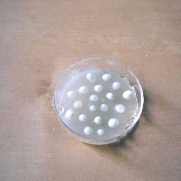 tenía un resplandor en la pintura oscura así que aplicó puntos de pintura sobre la superficie de la cola que parecía de colonias de bacterias transformadas con genes de bioluminiscencia.