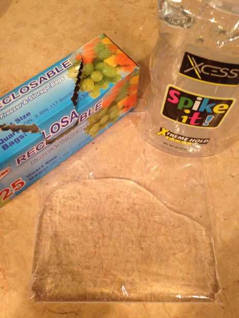 Bolsa de relleno con gel de pelo. He utilizado aproximadamente la mitad de la botella de gel para el cabello. Más también pueden ser utilizado.