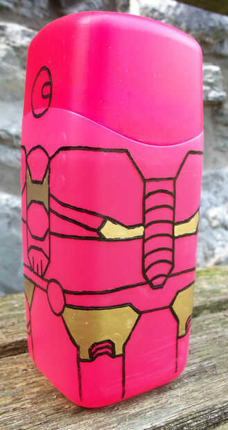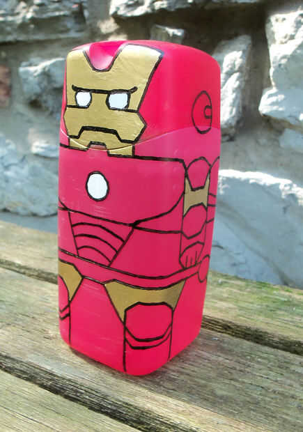 Me encontré con esta idea para el cumpleaños de un amigo mío. Es un gran fan de Robert Downey Jr y le hice un gel de ducha de Iron Man. Pero se puede imaginar cualquier cosa y todas las posibilidades están permitidas :)