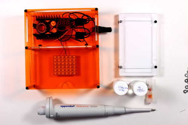 Este sistema ha sido construido especialmente con la facilidad de los científicos de uso en mente. Las bandejas son muy baratas para la construcción, que permite a los usuarios poseer varias. Esto significa que pueden ser premoldeados en paralelo y almacenados en un refrigerador, ahorro de tiempo. El sistema es también muy compacto, en sólo 5.5" x5.5", ahorro de espacio del Banco. Y todo el sistema es barato, lo que significa que es perfecto para la enseñanza. Voy a vender un kit para alrededor de $200 por todo el paquete, mientras que sistemas similares comerciales venden solo la caja (sin fuente de alimentación o iluminador) $ 600.