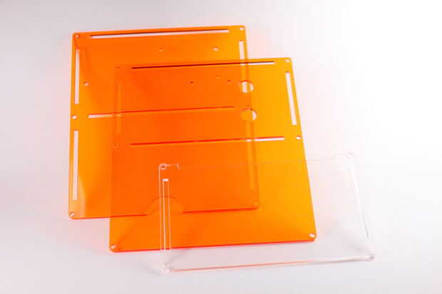 • Las placas superior e inferior de. 118" naranja acrílico (naranja, cuadro 1)