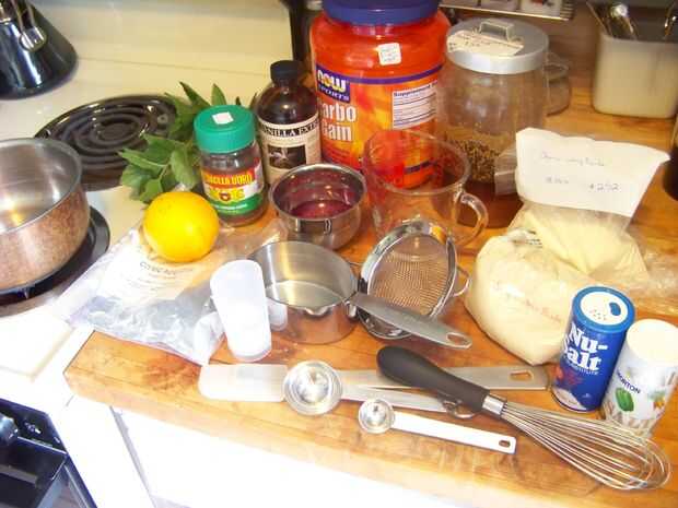 Ácido cítrico (le da un sabor "agrio" a los sabores afrutados, disponibles en tiendas de suministro de fabricación de queso, o a granel en algunas tiendas)