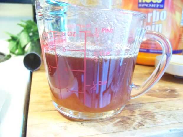De cítricos, jugo de 1 fruta usando el colador para recoger la pulpa de las semillas grandes. Añadir ácido cítrico de 1/2 cucharadita de acidez.