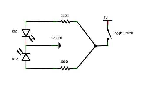 Por lo tanto, necesitamos una resistencia de Ohm 65 darle el LED 20 mA de corriente. Usé una resistencia de 100 Ohm ya tenía, así que mi LED azul en realidad es cada vez un poco menos de 20 mA.