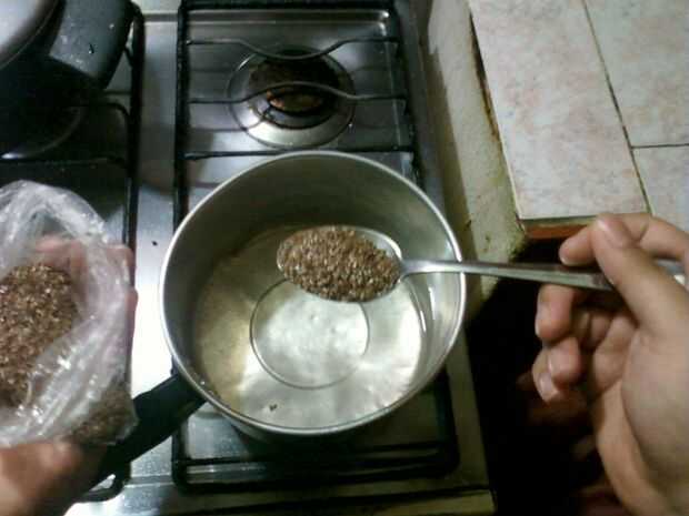 Espere hasta que se caliente y agregar las 2 cucharadas de linaza.