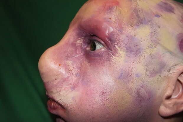 No tengas miedo a probar su propia prótesis de gelatina pero comenzar en primer lugar para ahorrar tiempo y dinero con heridas básicas y agujeros de bala etc. (instrucciones a seguir) luego construirlo hasta la cara y el cuello.