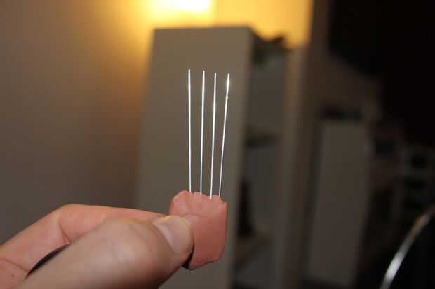 En la foto con el pequeño terrón de arcilla y algún alambre fino simple puede hacer su propia herramienta de refinamiento para raspar sobre el barro en muchas direcciones para crear la textura de la piel si es necesario.
