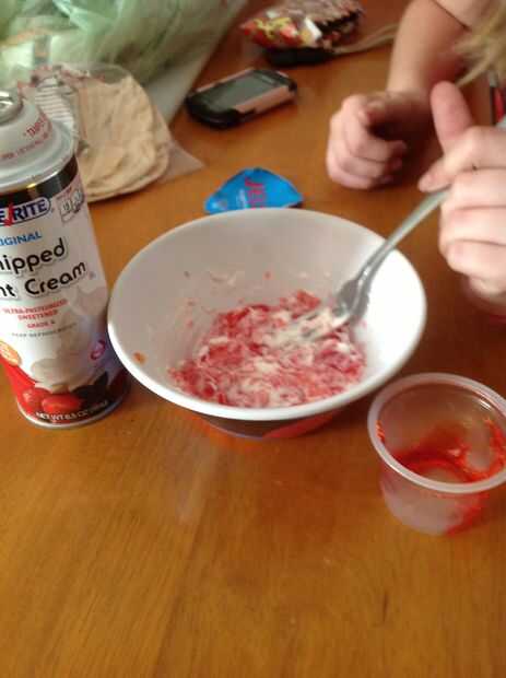 Mezcla y puré este maravilloso sorpresa hasta las vueltas crema batidas un color rosa!!!