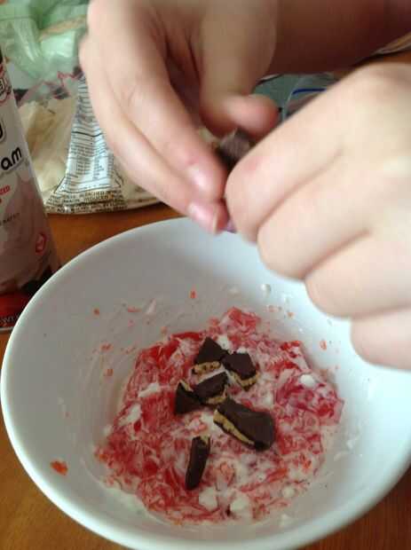 Ahora, añadir las galletas!!!! Triturar las galletas con las manos en trozos pequeños.
