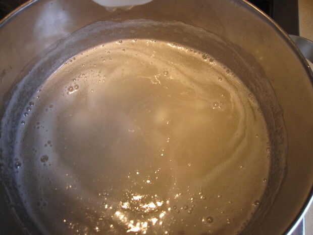 Agregar la pectina y hervir removiendo. A continuación añadir el azúcar y volver a hervir, seguir revolviendo.