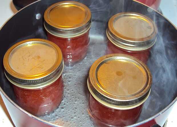 Agregar la tapa y el anillo - asegurándose de que el anillo esté bien. Esto puede ser un poco complicado, sólo tenga cuidado de no quemarse. (se venden pinzas de goma y cosas específicamente para conservar - si va a hacer de esto un montón, son absolutamente una compra que vale la pena.)