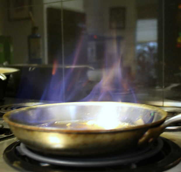 Colocar 1 taza de Calvados (o licor de alta graduación de su elección) en una olla pequeña y calentar hasta que el líquido comience a shimmer. Cuidadosamente del palillo sobre el alcohol evapora sólo una cerilla larga o ardiente brocheta (o similar fuente de fuego que guarda sus dedos fuera del camino) y le prendieron fuego. Disfrutar de las llamas durante unos minutos, mantener un ojo cauteloso en cualquier materiales combustibles cercanos y tal vez asar unos mini-malvaviscos sobre el incendio. Cuando mueren las llamas, continuar calentando el Calvados hasta que se reduzca a aproximadamente 1/8 taza (2 cucharadas).