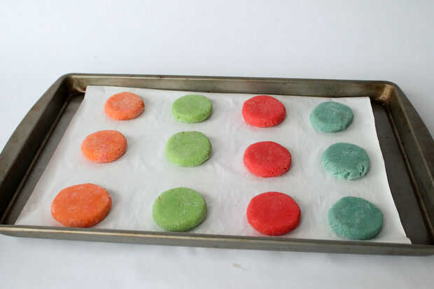 Galletas fáciles y hermosas y vibrantes colores.Hice estas usando una masa de galletas de azúcar y osos gomosos.Los osos gummy prestan una gelatina masticable como centro y la cookie crujiente alrededor de él es una combinación interesante.El centro