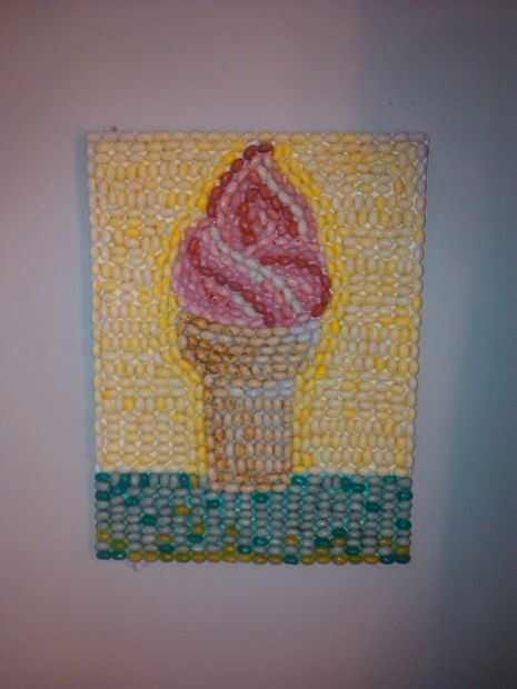 - Habas de jalea del vientre, de cada color para completar el cuadro (supongo que se pueden utilizar habas de jalea regular, pero no lo sugiero. Jelly Bellys son el tamaño perfecto, aunque son un poco caros! El mejor lugar para conseguirlas es en la sección a granel, o si usted está haciendo un gran mosaico, puede pedirlos en línea.)