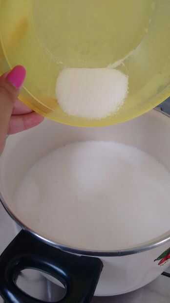 Apagar el fuego y añadir dos cucharadas de edulcorante stevia. Recuerda que este sustituto tiene la función de endulzar dos veces.
