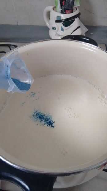 Por último, debemos añadir la cucharadita de extracto de vainilla y el color del tinte de tu elección y vierta en copas o moldes